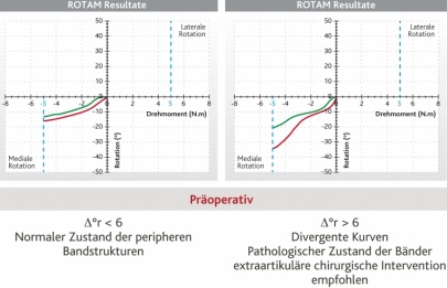 Bei medialer Rotation: eine große Rotationsdifferenz deutet auf eine Beteiligung des VKB's auf der vorderen/seitlichen Ebene hin (mögl. Indiz für eine extraartikuläre Intervention in Begleitung der VKB Operation).