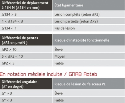 Enfin, dans le cas où le faisceau postéro-latéral a été déchiré et n’assure pas sa fonction de freinage, les mesures effectuées avec le GNRB Rotab nous montrerons une augmentation concernant la rotation tibiale médiale, indiquant ainsi que le faisceau postéro-latéral du LCA est déchiré.
